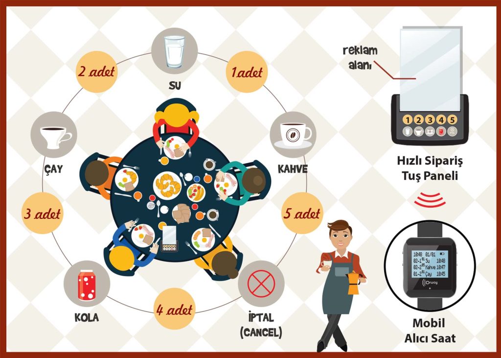 Bu sistem ile müşteri vermek istediği siparişi ve adedini tek tuşla garsona iletmiş olur. Bu sayede servis hizmetinin müşteriye en kısa sürede ulaşması sağlanır. Günümüz hizmet sektöründe rekabet koşullarının en üst seviyede olduğu süreçte mükemmel ve en hızlı hizmet sunularak, müşteri memnuniyetinin en yüksek seviyede olması sağlanır.