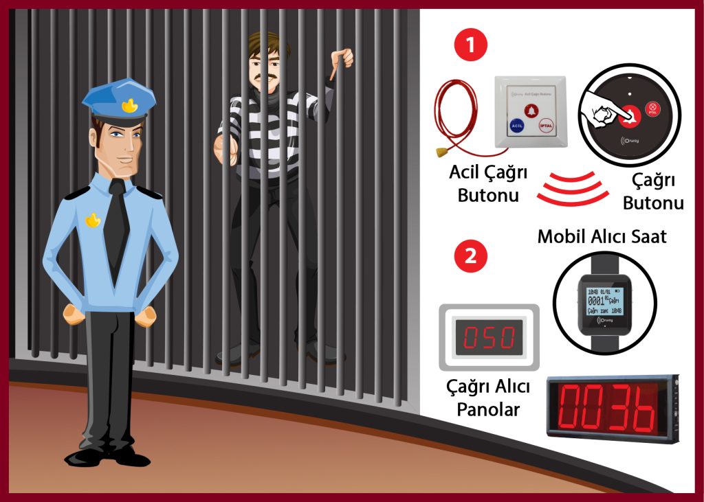 Ceza evlerinde mahkûmların acil durumlarda ve gerekli olduğu zamanlarda görevli gardiyan ve personel memuruna ulaşabilmesi için tasarlanmış olan kablosuz bir çağrı sistemidir.