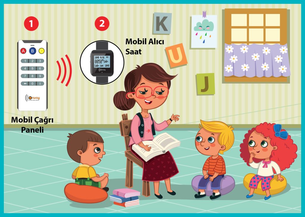 Çoklu kullanımlar için Çağrı Paneli,Bireysel kullanımlar için çağrı butonları ve alıcı Saat titreşimli uyarı sisteminden oluşmaktadır. ABS Plastik malzemeden üretilmiş olup vida ve özel bandıyla yapıştırılma özelliğine sahiptir.