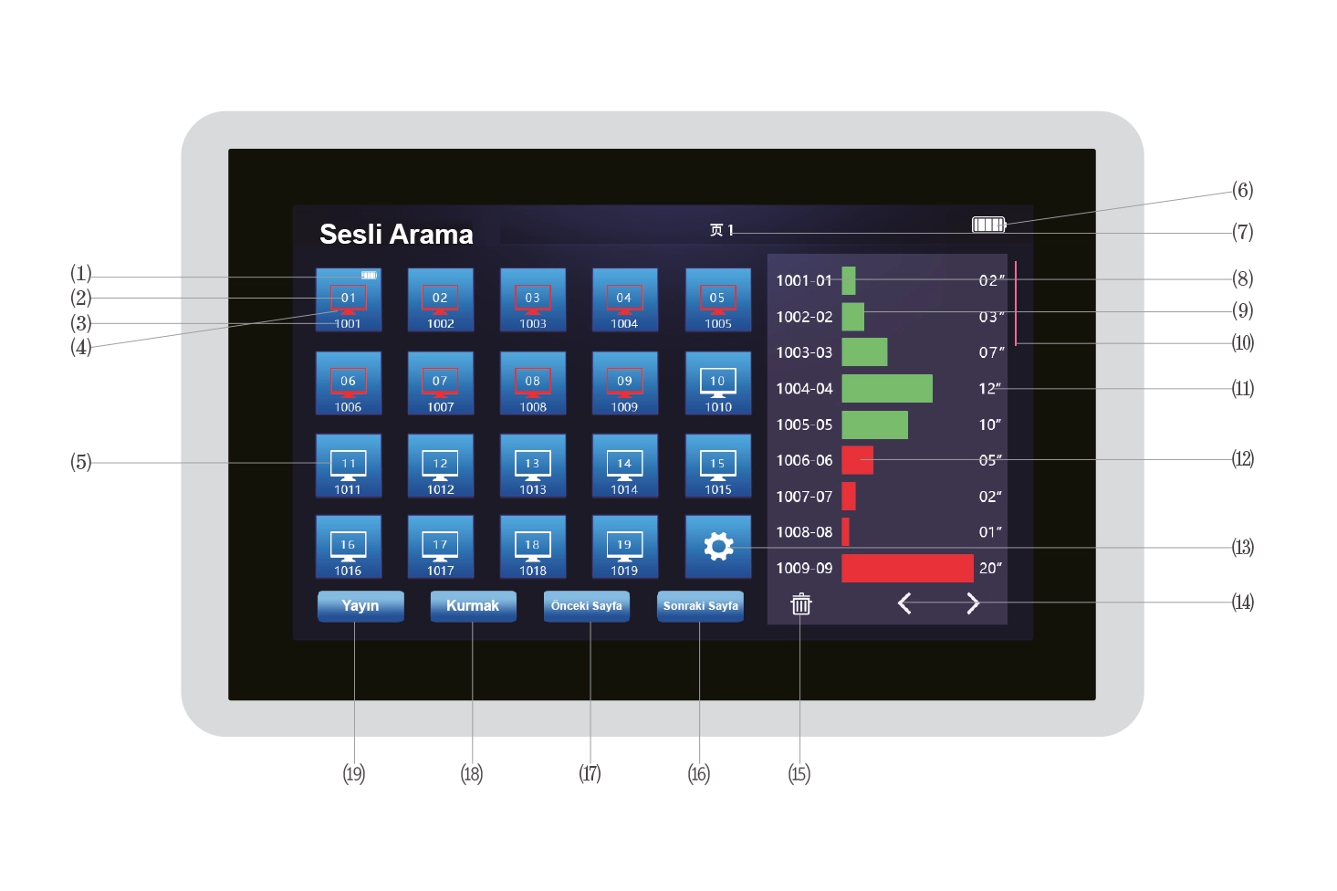 Sesli çağrı sistemi bire bir ve çoklu arama sayesinde sesli konuşarak çağrı yapma özelliği sayesinde 99 dahili numarayla eşleştirilebilen kablosuz iki yönlü sesli arama işlevine sahiptir.